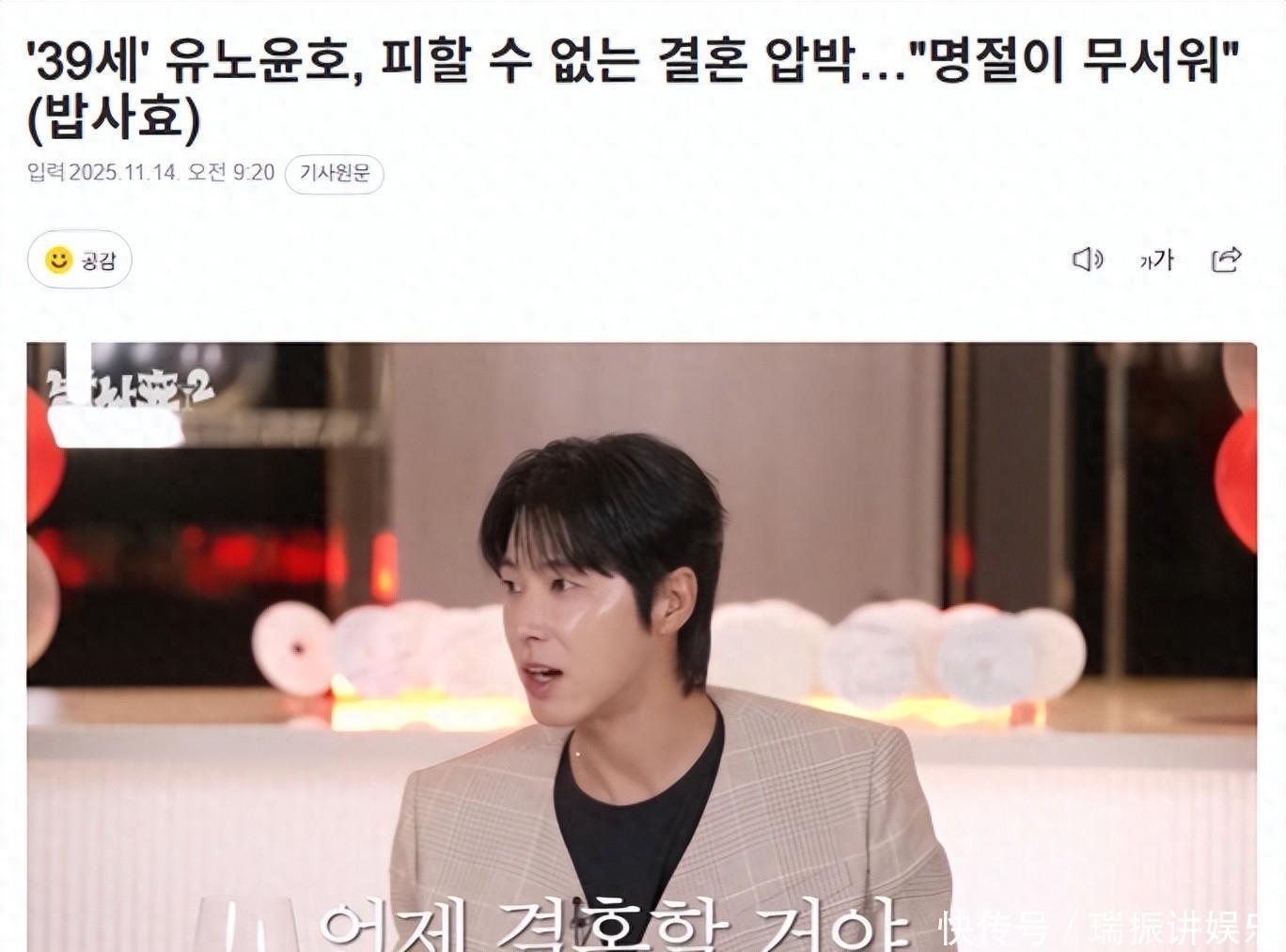 谈及艺人是否也难逃催婚压力时,允浩坦言:“=从五、六年前就开始被催婚,现在过节都感到害怕。”接着他具体举例称:“小奶奶总说‘什么时候结婚?赚大钱、送礼物这些都不重要’”,透露出对节庆期间循环往复的催婚问话感到负担。听到孝渊表示“还没经历过催婚”,作为前辈的允浩暖心建议:“这是好事。自从开始被催婚,不知不觉就会感受到现实压力。现在趁还能做自己想做的事,一定要好好把握住机会。”