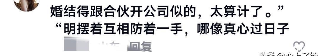 网友吵翻天了支持的人说:“这才是聪明人的做法!我跟我老公也各管各的钱,过得挺好。”“感情好不好,非要靠开公司证明?”反对的人觉得:“这婚结得跟合伙开公司似的,是太清醒呢?还是太会算计了。”“明摆着互相防着一手,哪像真心过日子?”